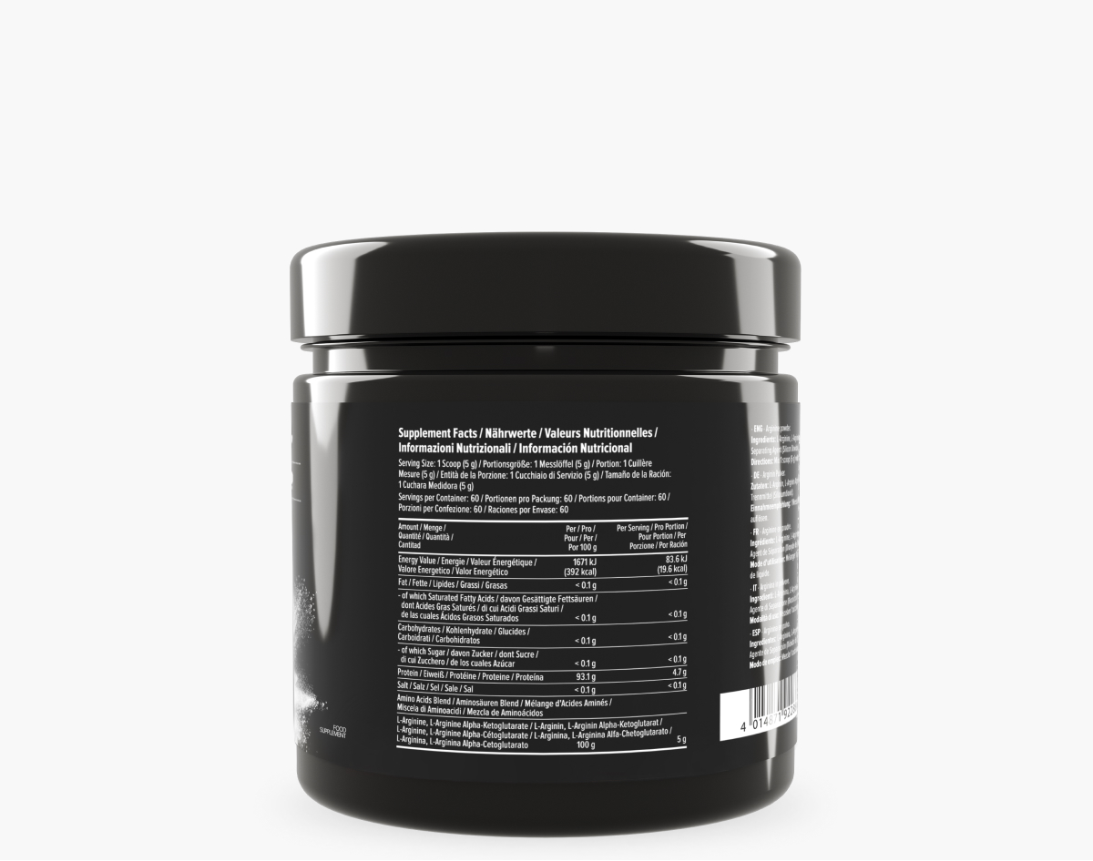 The powder is highly concentrated containing 5 g of AAKG per serving, with no unnecessary ingredients like colorings or flavor.