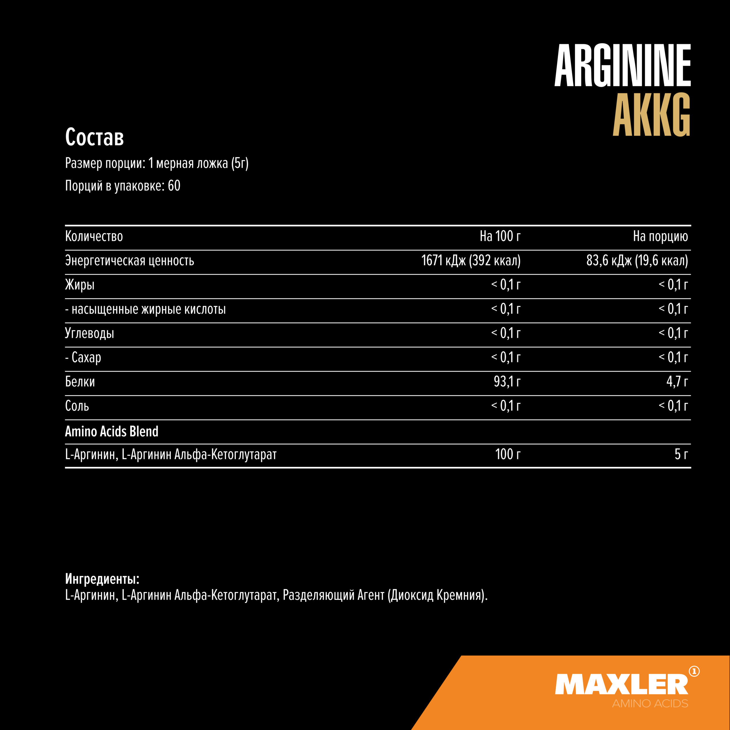 Аргинин AAKG — это соль аминокислоты аргинин в сочетании с альфа-кетоглютаровой кислотой. L-аргинин — это аминокислота, которая используется для построения белка и стимулирует выработку креатина и оксида азота. Он может расширять кровеносные сосуды. В сочетании с альфа-кетоглутаровой кислотой аргинин усиливает свое действие в несколько раз.