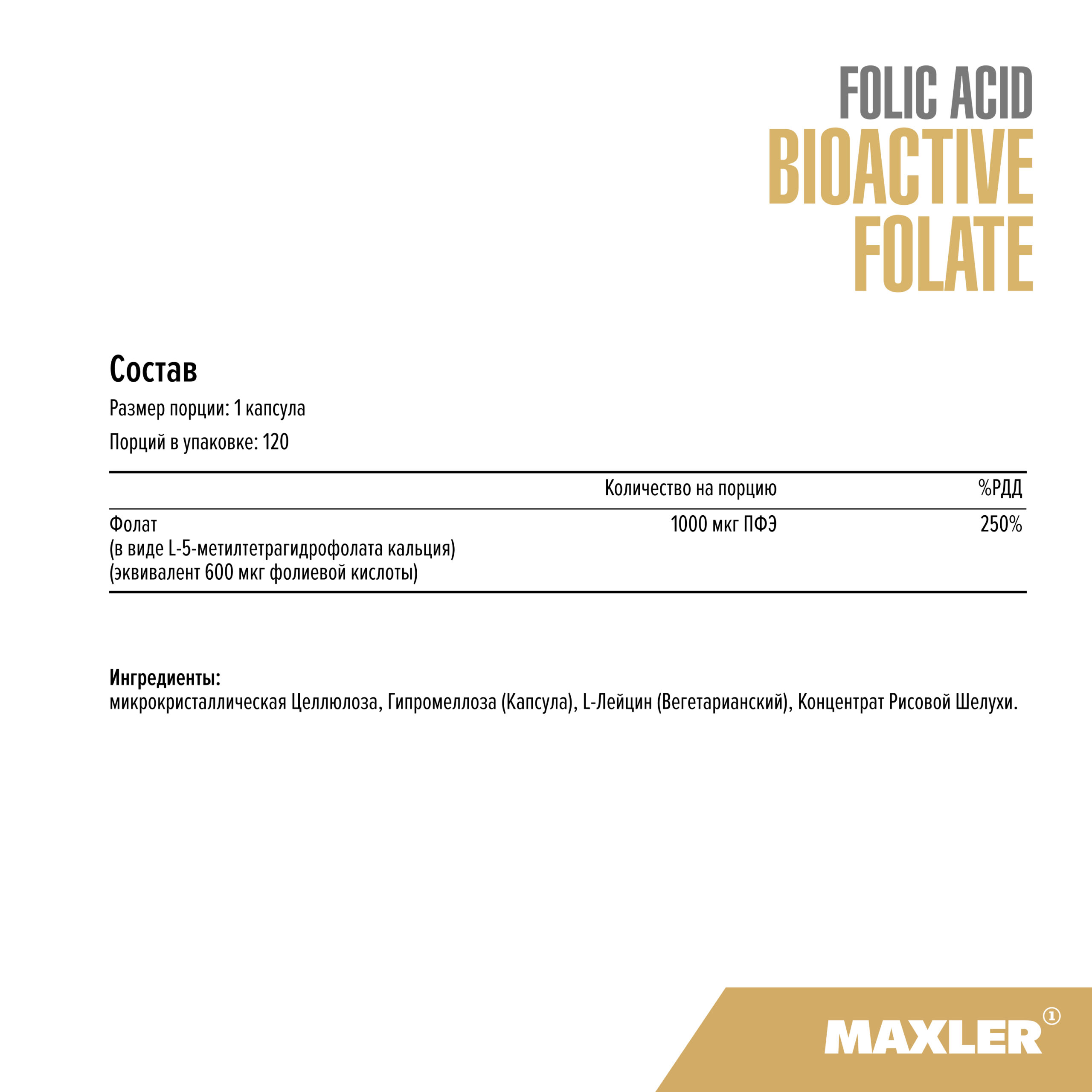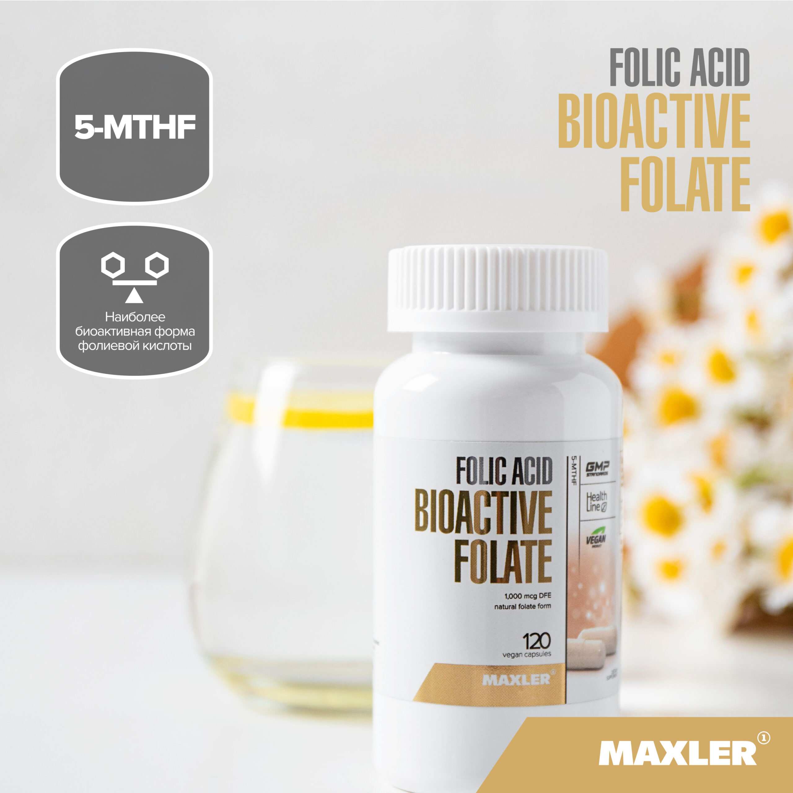 Организм не может использовать витамин B9 в форме фолиевой кислоты — сначала ее нужно переработать. Организм превращает его в 5-метилтетрагидрофолат, или 5-MTHF, и только после этого использует. Maxler Folic Acid Bioactive Folate сразу представлен в форме 5-MTHF и упрощает организму работу.