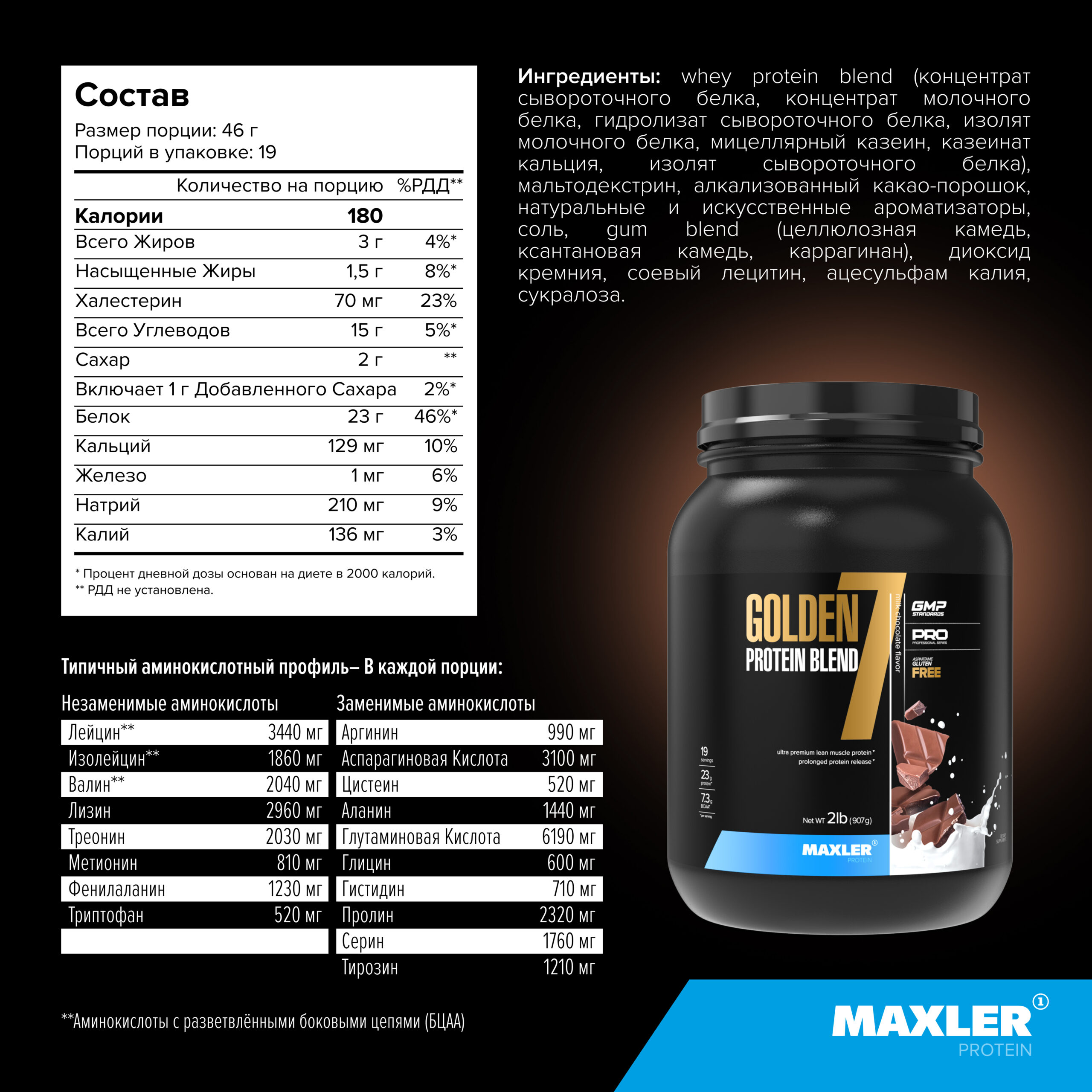 Golden 7 Protein Blend от Maxler отлично подходит как для профессиональных спортсменов, так и для любителей. Он содержит 23 г белка, 7,3 г BCAA и обладает восхитительными вкусами. Благодаря наличию микроэлементов, таких как кальций, этот белок обеспечивает поддержку здоровья и рост мышц.