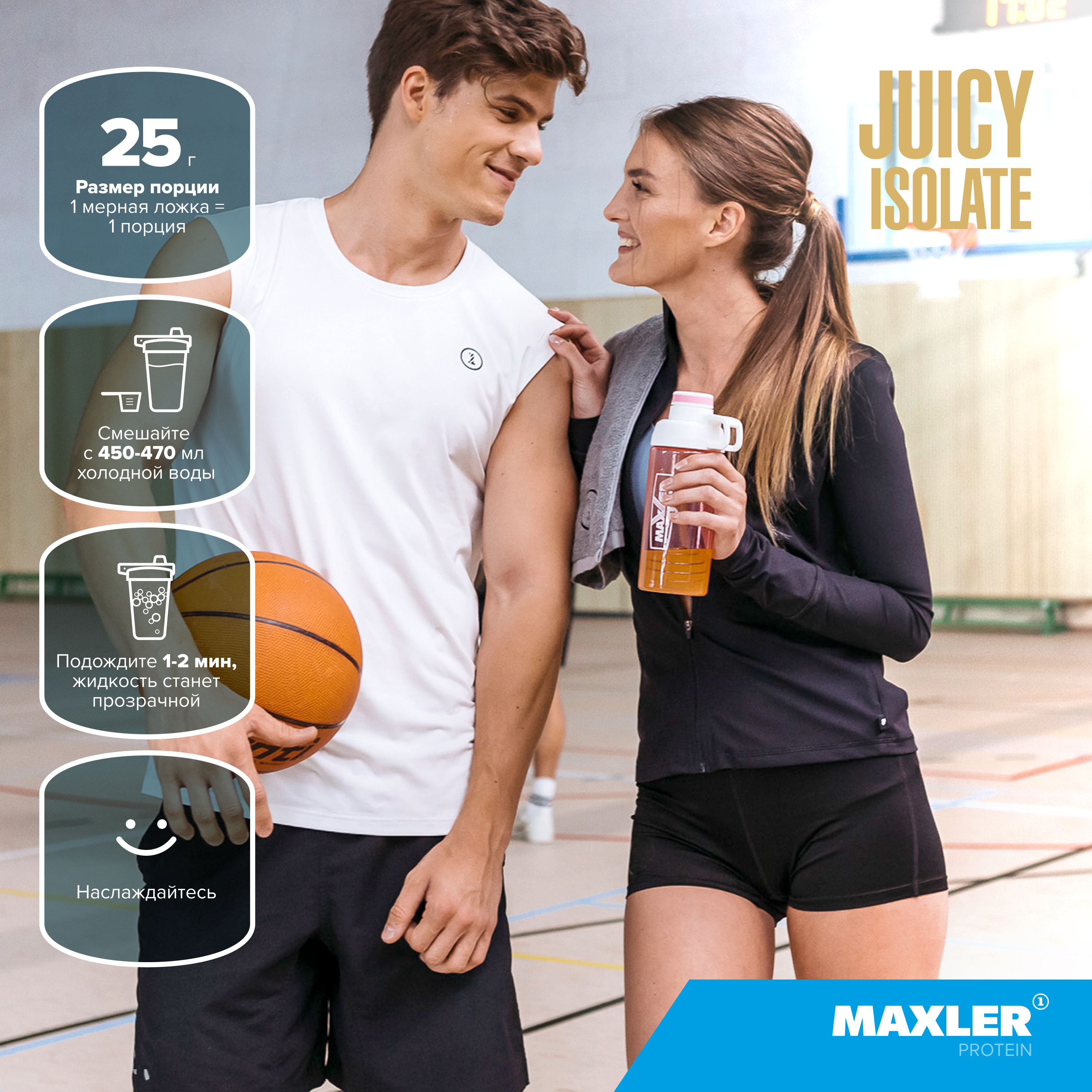 Juicy Isolate is a protein isolate with high nutritional value and a clean taste. It is an excellent source of essential amino acids, including BCAAs – branched-chain amino acids. Juicy Isolate from Maxler is a light, high-protein refreshing drink that will help you grow and maintain muscle mass.