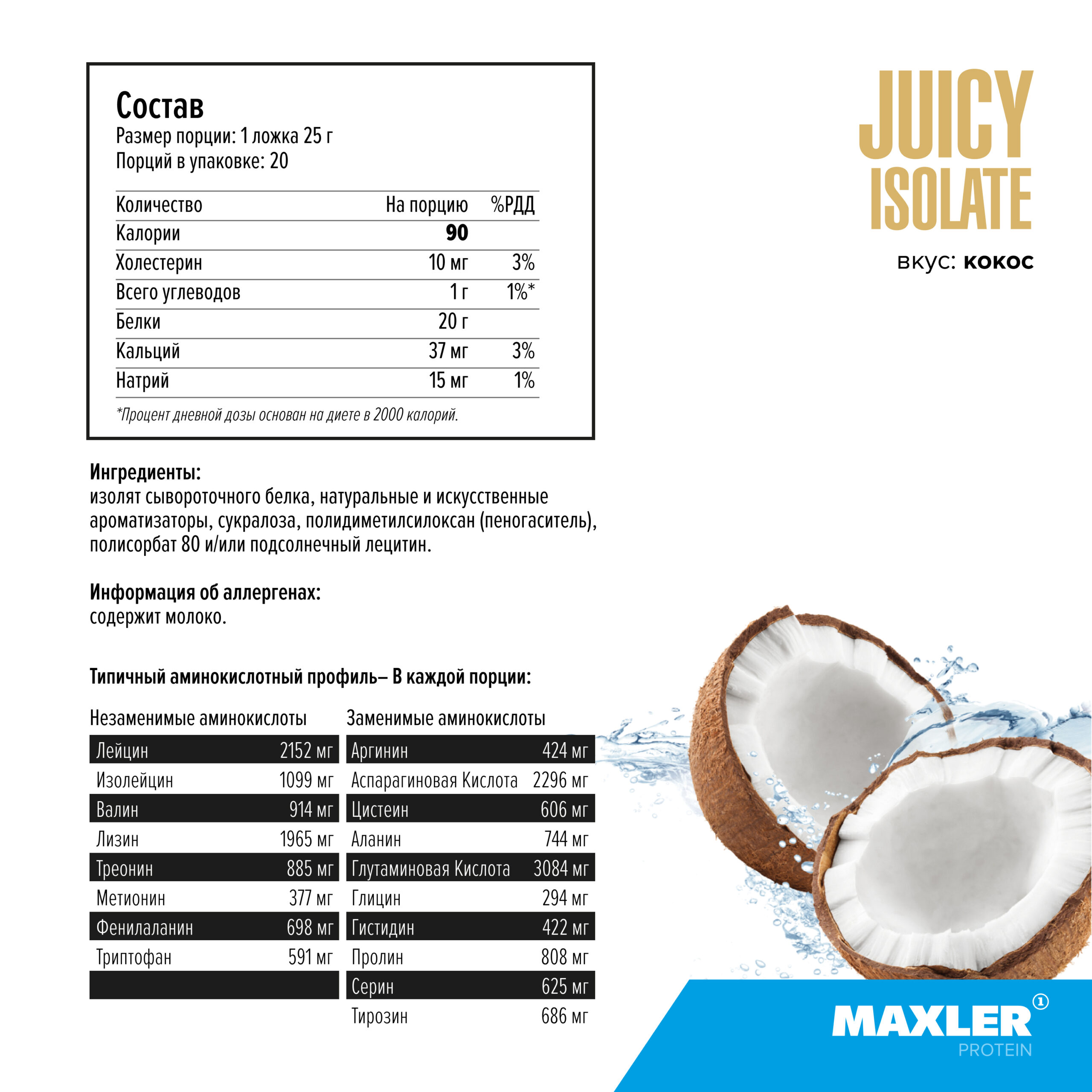 Juicy Isolate от Maxler — это лёгкий, насыщенный белком освежающий напиток, способствующий росту и поддержанию мышечной массы. Это прекрасный источник незаменимых аминокислот, в том числе ВСАА — аминокислот с разветвленной цепью.
