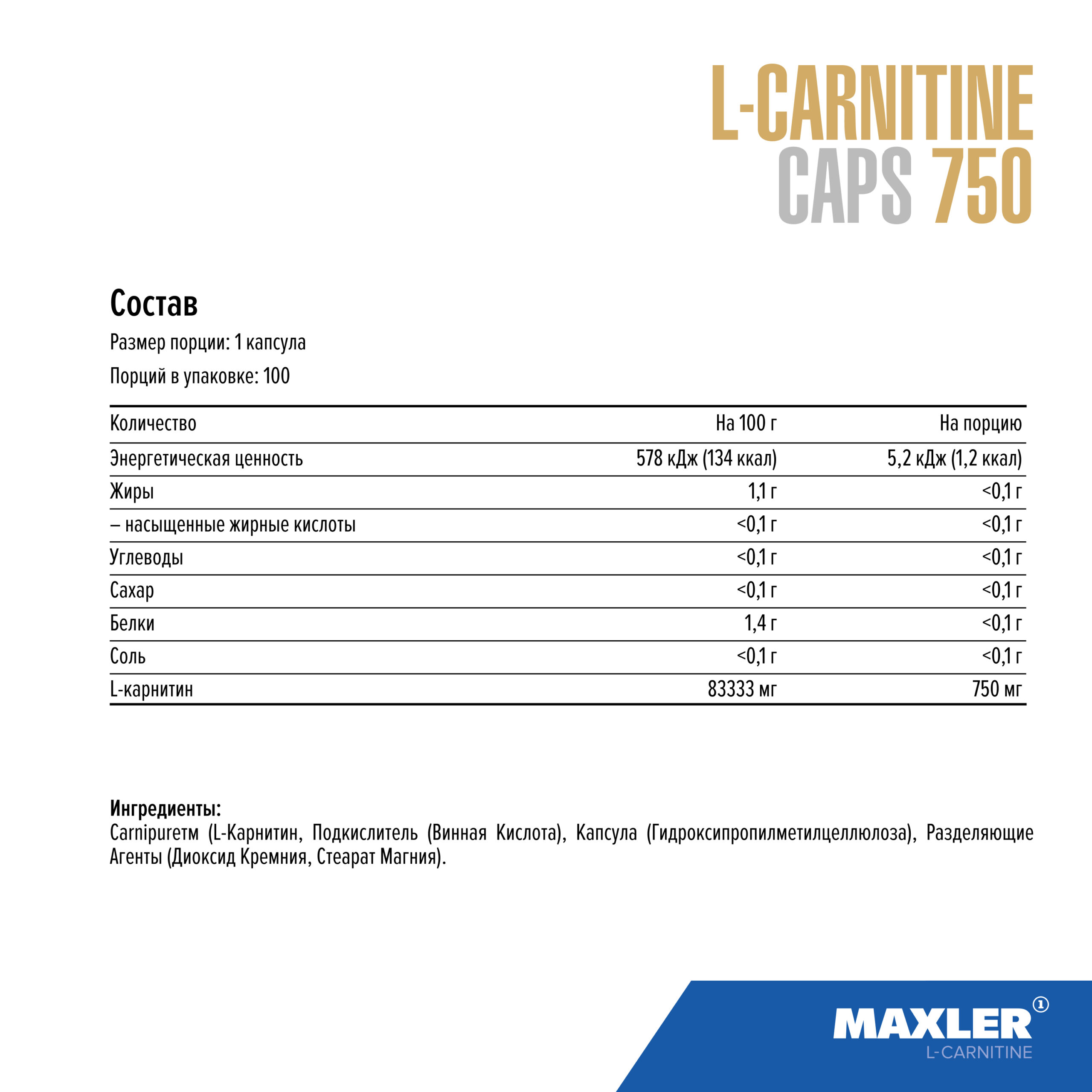 L-карнитин может быть в разных формах в разных продуктах. Некоторые добавки могут содержать ацетил-л-карнитин — эта форма тоже содержит карнитин, но ей отдают предпочтение те, кто хочет поддержать работу мозга. Maxler L-Carnitine 750 содержит L-карнитин l-тартрат. Эта форма лучше всего подходит для повышения эффективности тренировок, а пропионил-l-карнитин — для улучшения кровотока.