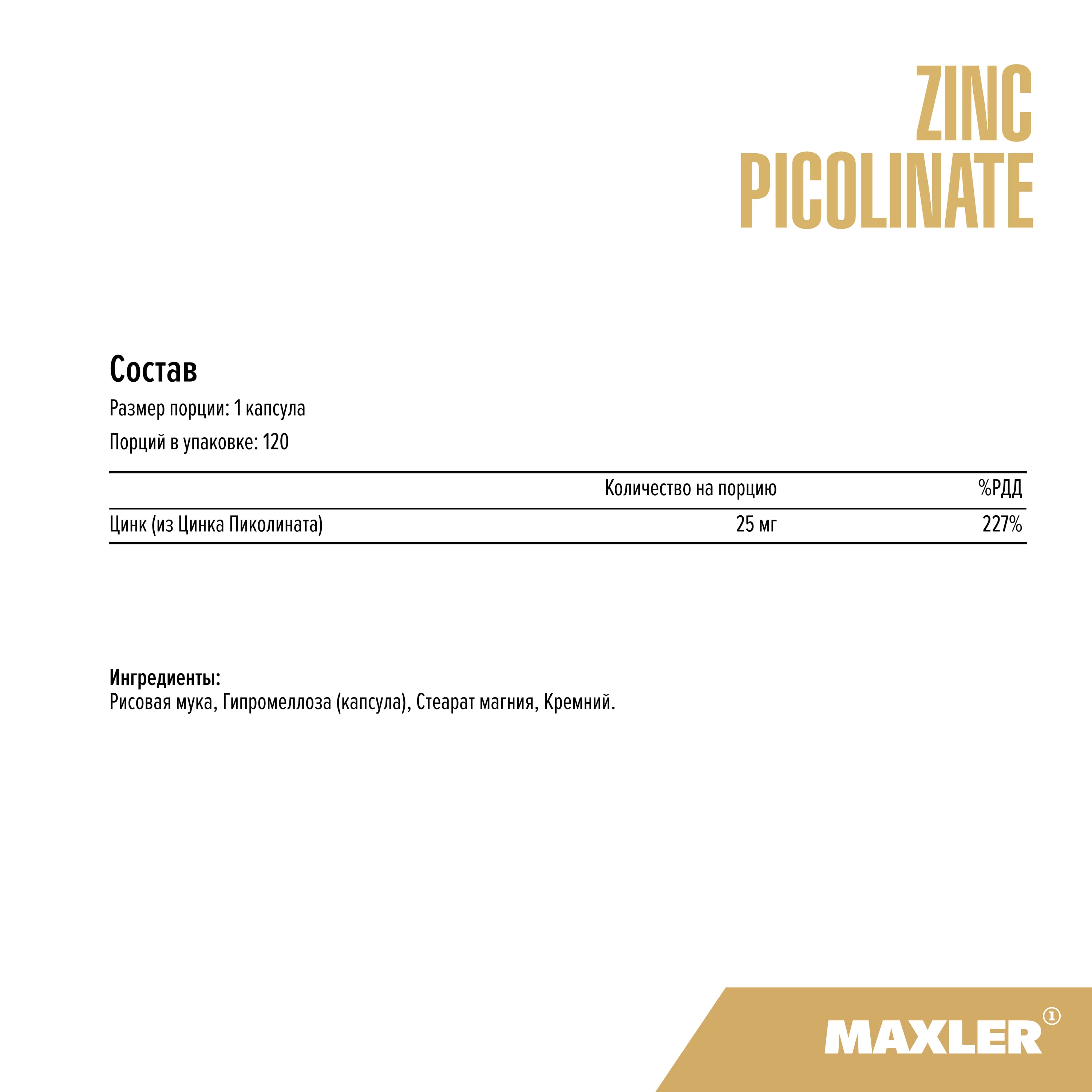 Рекомендуемая продолжительность курса составляет 30 дней. Сделайте Zinc Picolinate 25 mg от Maxler полезным дополнением к вашему рациону — и он станет надежным защитником вашего иммунитета!
